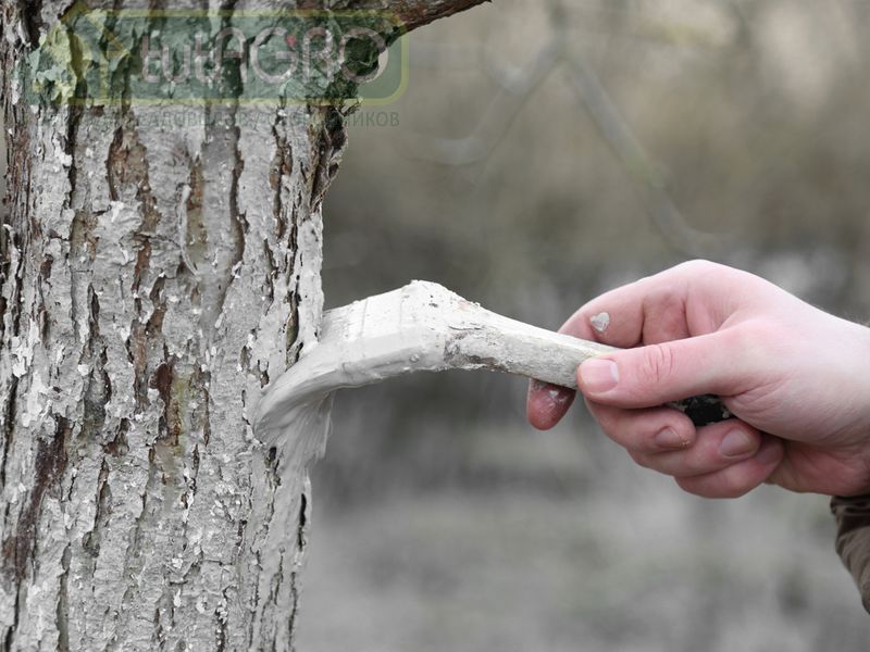 Если побелка, нанесенная на стволы деревьев с осени, смылась, то в период продолжительной оттепели ее можно обновить.