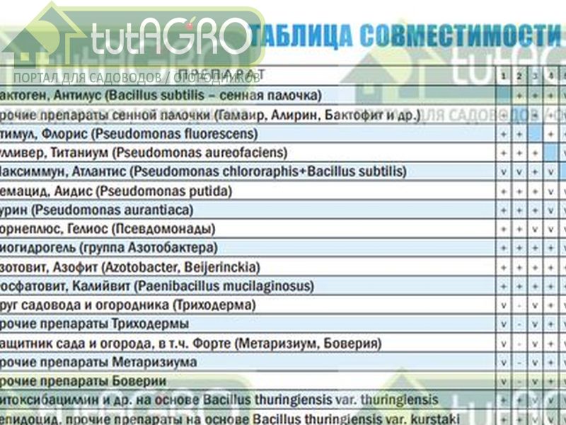 В помощь садоводам и огородникам биолог Иван Русских подготовил таблицу совместимости биопрепаратов: