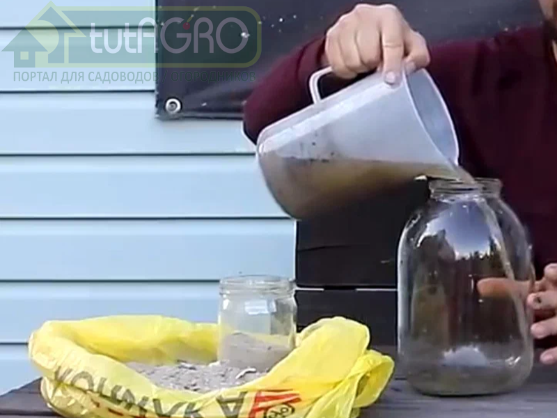 Пол литра золы залить одним литром воды, дать настояться (до суток), затем перелить слить жидкость с осадка в трехлитровую банку, стараясь не примешивать осадок. Такой монофосфат хорош для огурцов, смородины и других растений (голубика, рододендроны, гортензия, туи...), которым не нравится избыток кальция в почве. А вот для томатов, перцев, баклажанов, капусты и всех капустных овощей, вишни и всех косточковых, яблони и всех семечковых, орехоплодных осадок лучше с осадка не сливать.