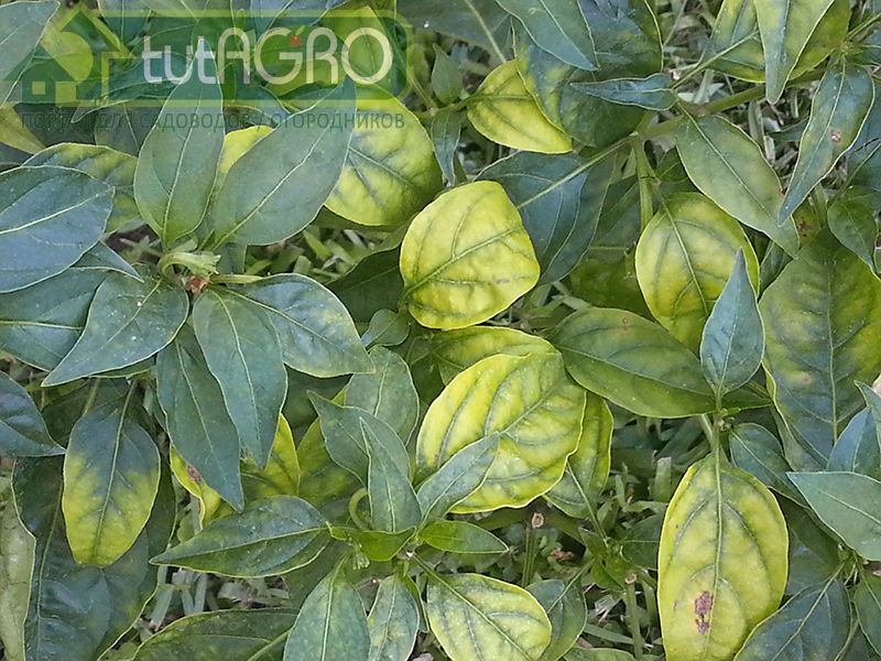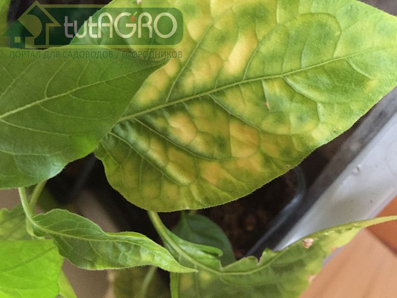 Листики приобретают мраморную окраску (хлороз листьев) при недостатке магния. Самое время для внекорневой подкормки: 20 г сульфата магния на 10 л воды, опрыскать растения 2-3 раза с интервалом 5-7 дней.