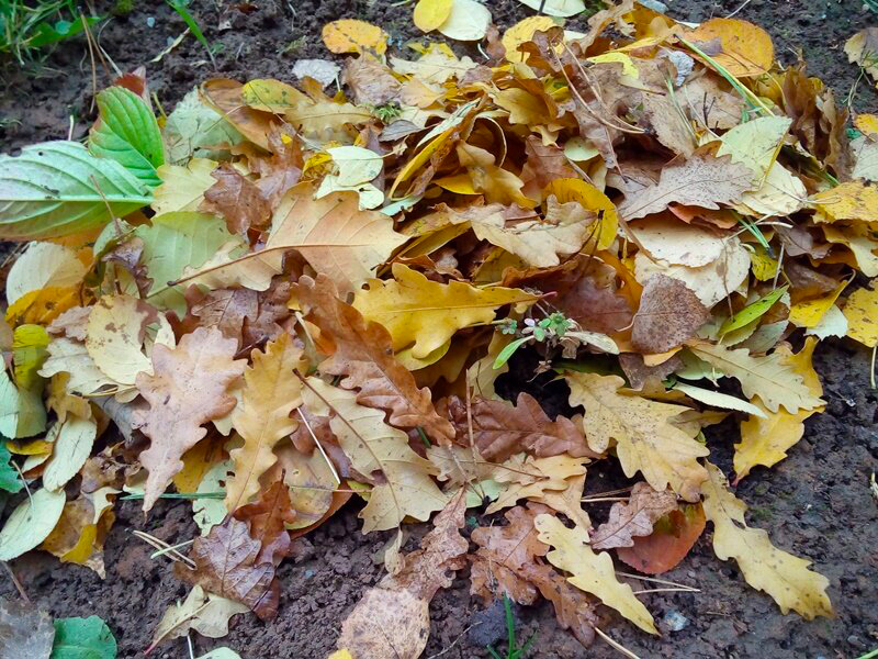 Опавшая листва дуба, клена, березы, лещины послужит хорошим укрытием от морозов для теплолюбивых растений - роз, хост, клематисов и многих других. А весной - создаст хороший мульчирующий слой, препятствующий росту сорняков.