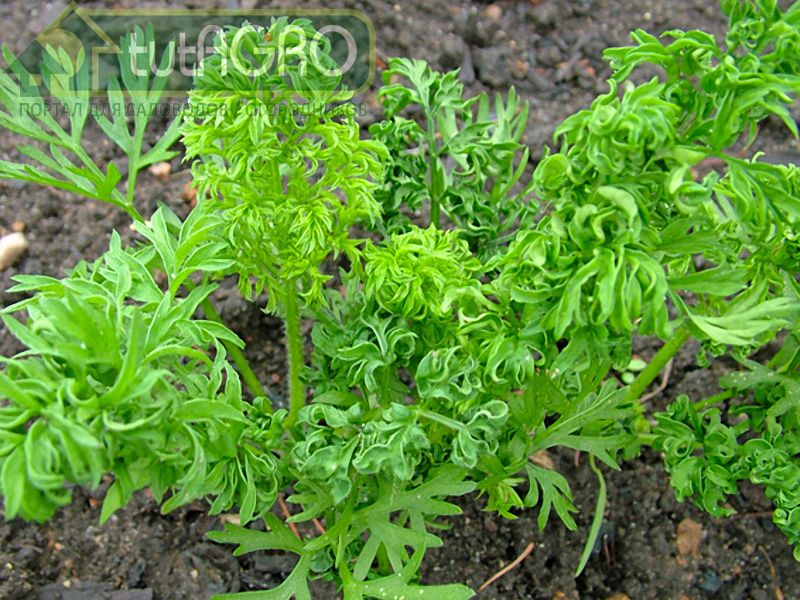 При повреждении вредителями изменяется форма листьев моркови, они прекращают рост, скручиваются, деформируются (кучерявятся), становятся похожими на листья петрушки.