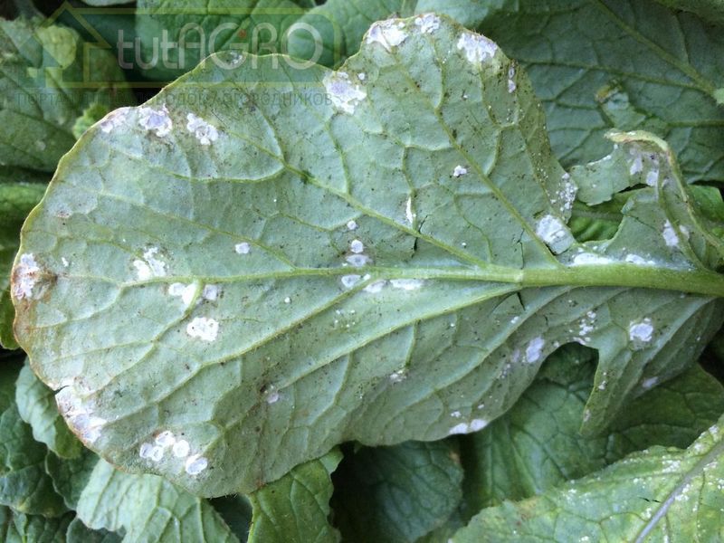Среди болезней редиса и других капустных растений самое распространенное - пероноспороз (ложная мучнистая роса). Заболевание проявляется в виде белесых расплывчатых пятен на поверхности листьев и рыхлого налета на их нижней стороне. Пораженные растения отстают в росте, плохо развиваются, теряют вкусовые качества, не пригодны к хранению.