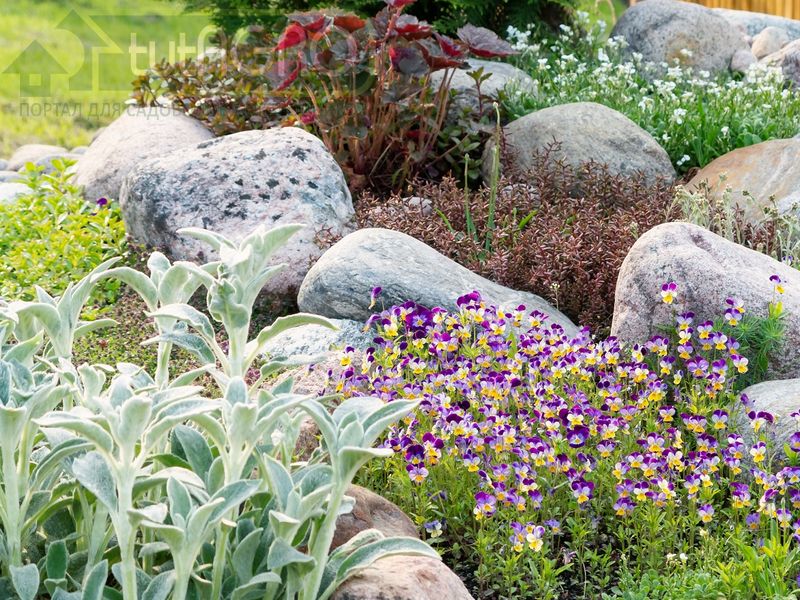Обе эти разновидности цветников включают в себя растения, характерные для гористой местности, а также камни. Обязательным элементом альпийской горки и рокария являются хвойные растения, от медленнорастущих минихвойников до крупномеров, в зависимости от площади цветника.
