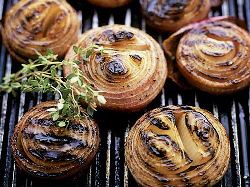 Лук репчатый – 4—5 шт., мед – 2 ст. л., горчица – 1 ст. л., растительное масло, твердый сыр – (пропорции произвольные).