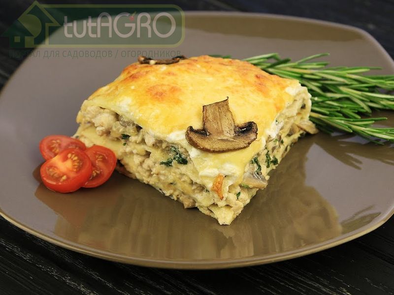 Блинчатый пирог с картофельным пюре и грибами