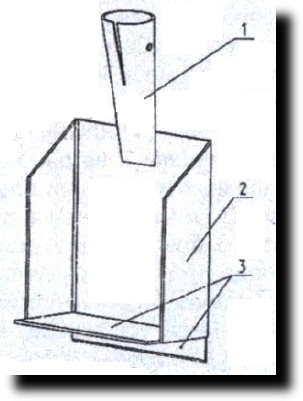Лопата делается из заготовок листовой стали толщиной 2 мм, сваренных между собой в компактный каркас. Задняя стенка лопаты имеет заточенную снаружи кромку (снаружи удобней затачивать). Две боковые стенки образуют каркас лопаты, которые тоже нужно заточить. Между стенками под небольшим углом вставляется и приваривается нож-скребок. Все сварочные швы выполняются снаружи с последующей зачисткой наждаком. Это делается для того, чтобы земля не прилипала и легко попадала в полость лопаты. К верхней части каркаса приваривается труба для крепления черенка лопаты. Черенок делается длиной 3 м, надежно заклинивается и закрепляется.