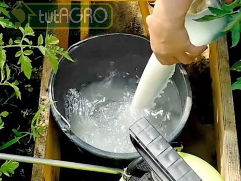 Полученный раствор перелить в ведро, довести объем водой до 10-12 л.
