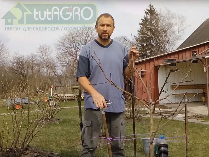 После подвязки саженца к опоре необходимо гармонизировать объем кроны с уменьшившимся объемом корневой системы. Оставляем в основном магистральные ветви, а половину плодовых веточек удаляем. В период цветения удаляем все цветочки с оставшихся веточек. Все это необходимо для нормального развития и роста пересаженного дерева, которое порадует вас урожаем на следующий год.