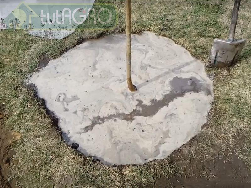 Дерн порезать на куски, уложить на дно ямы и присыпать плодородным грунтом, чтобы обеспечить качественное питание саженца. Если почва кислая, можно добавить в яму печной золы.
